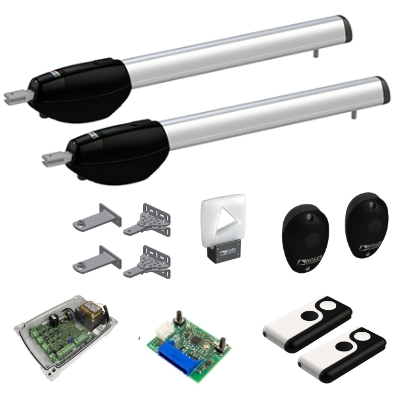 KIT BE20/410 – BRUSHLESS 36V pohony pre rezidenčné a menšie priemyselné krídlové brány s bežnou alebo super intenzívnou prevádzkou. Veľmi plynulý rozbeh a spomalenie v koncových polohách bez straty výkonu. Sada BE20/410 pre 2-krídlové brány do 4 m (8 m prejazd) má dlhú životnosť, štandardnú rýchlosť, veľmi nízku hlučnosť a 2 mechanické dorazy pri otvorení aj zatvorení. Maximálny výsuv pohonov je 550 mm a sú vyrábané v modernom dizajne charakteristickom pre profesionálne produkty automatizácie.