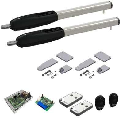 KIT SMARTY7M – BRUSHLESS 36V pohony pre priemyselné krídlové brány s bežnou alebo super intenzívnou prevádzkou. Veľmi plynulý rozbeh na začiatku a spomalenie v koncových polohách bez straty výkonu. Sada SMARTY7M pre 2-krídlové brány do 7 m (prejazd 14 m) má dlhú životnosť, štandardnú rýchlosť, veľmi nízku hlučnosť a 2 mechanické dorazy pri otvorení aj zatvorení na každom pohone. Maximálny výsuv pohonov je 520 mm a sú vyrábané v modernom dizajne charakteristickom pre profesionálne produkty automatizácie.